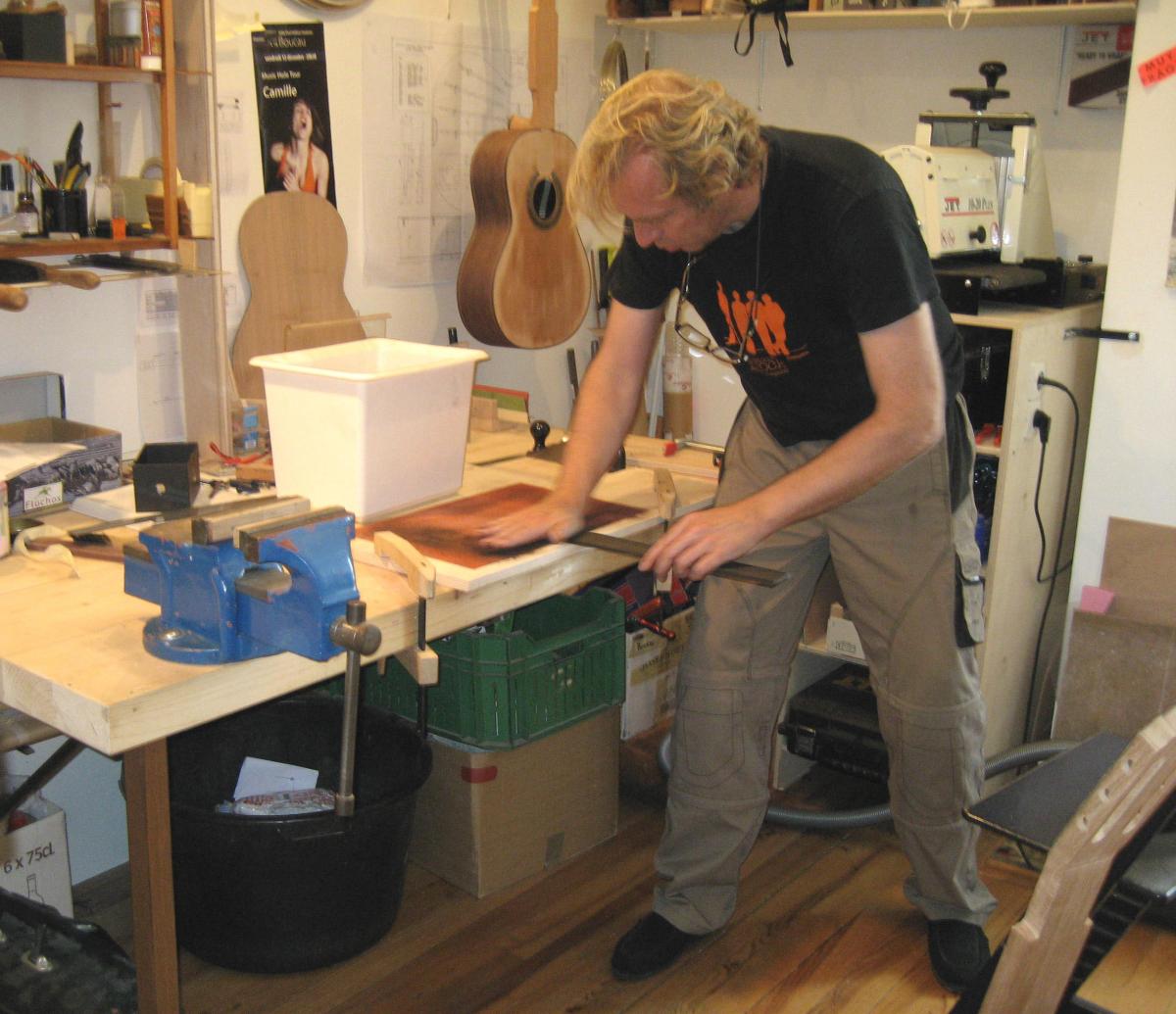 Al op jonge leeftijd ben ik begonnen met gitaar spelen (en het fabriceren van "gitaren" van sigarenkistjes met snaren van nylon vislijn). Op een dag kwam ik in de gelegenheid om op een echte handgemaakte gitaar te spelen. Ik was erg onder de indruk van de harmonie, de rijkere klankkleur, de grotere souplesse maar ook de stabiliteit van het instrument. Geleidelijk werd ik me ervan bewust dat ik op zoek was naar de perfecte harmonie, die zowel afhankelijk is van de kwaliteiten van de gitarist als van zijn instrument. Vandaag ben ik nog steeds opzoek naar die perfectie en probeer ik nog dagelijks mijn instrumenten te verbeteren… Na 15 jaar in Frankrijk gewoond te hebben waar ik me het vak van luthier heb eigen gemaakt, heb ik mij eind 2012 weer in mijn geboortedorp Nuenen gevestigd alwaar u mijn atelier op afspraak kunt bezoeken (06 16 93 75 62).